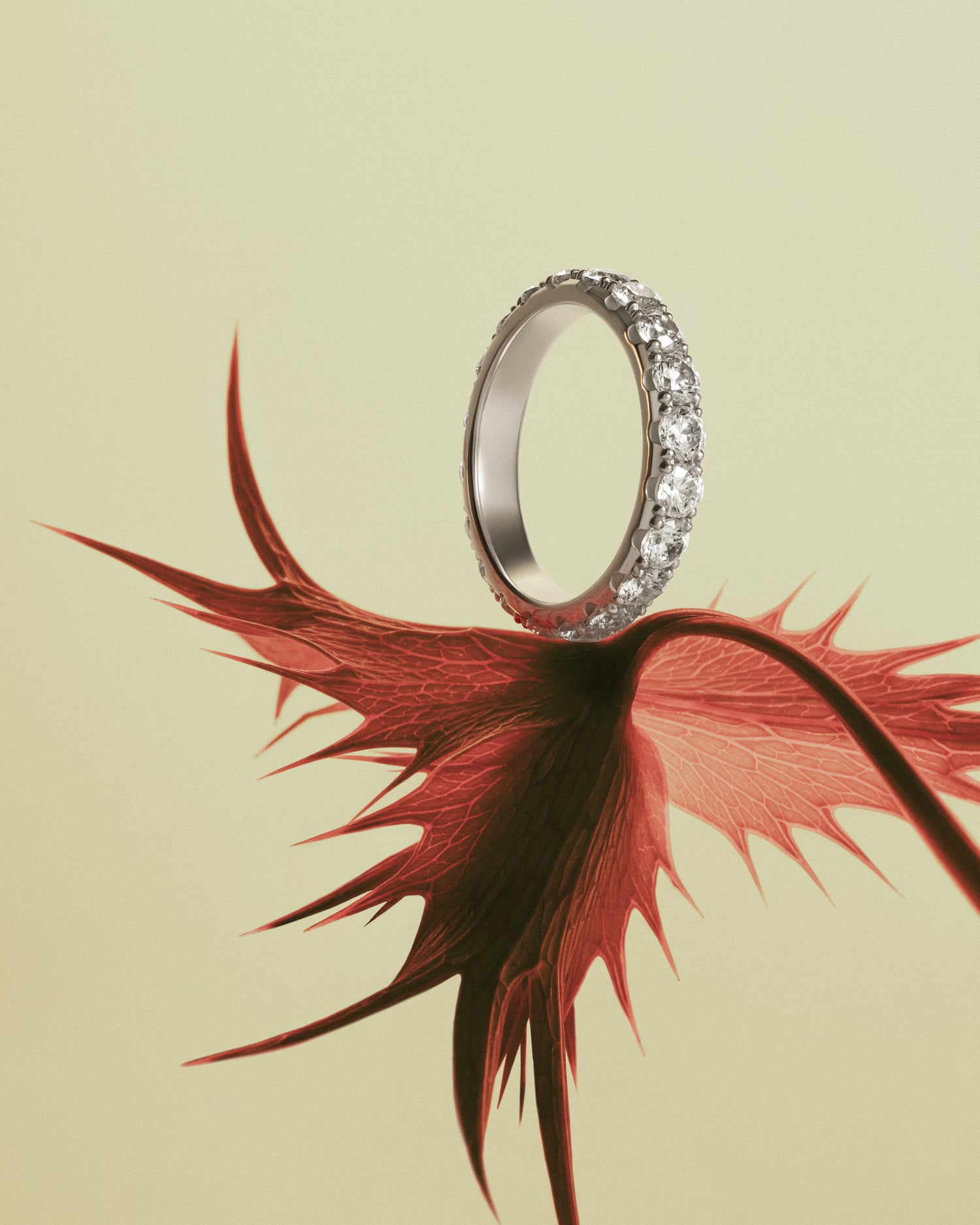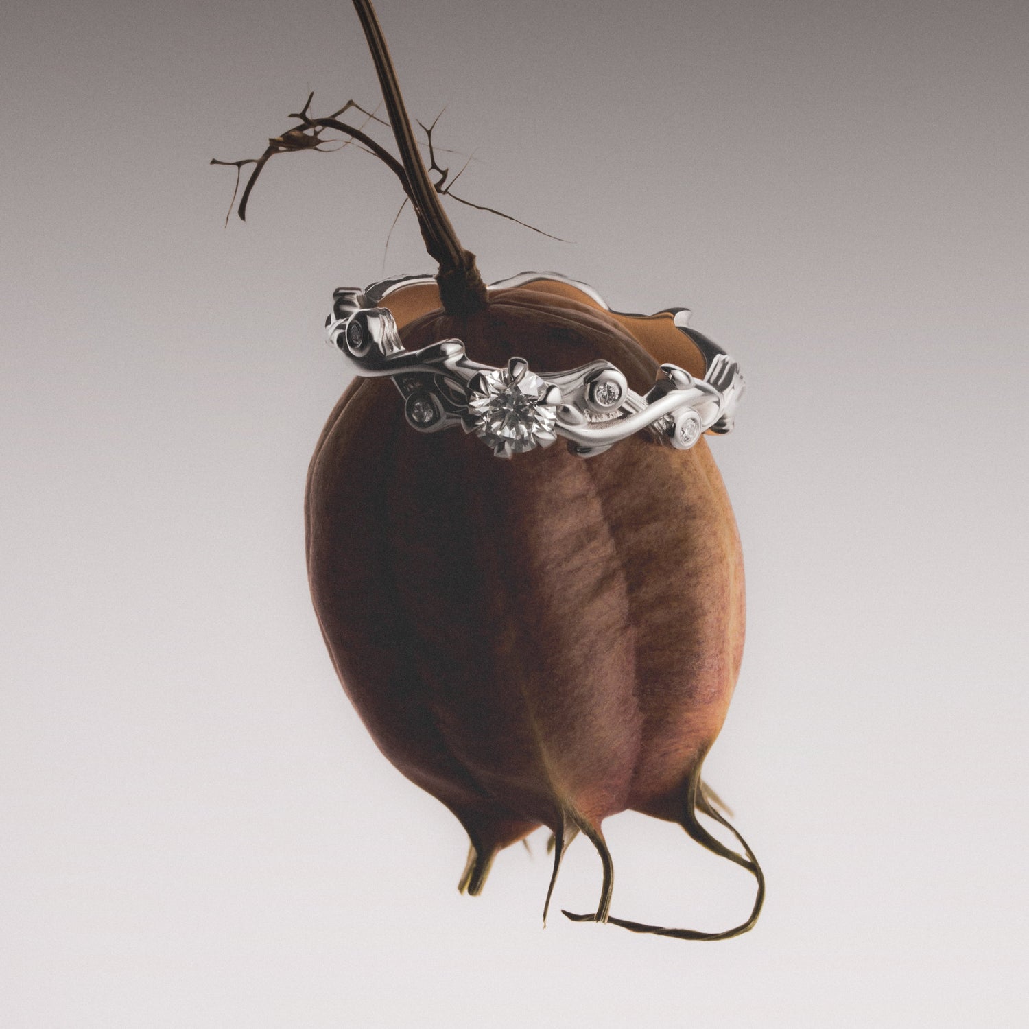 Liebe der Wiesel — Ring aus Weißgold mit Diamanten, überzogen mit weißem Rhodium