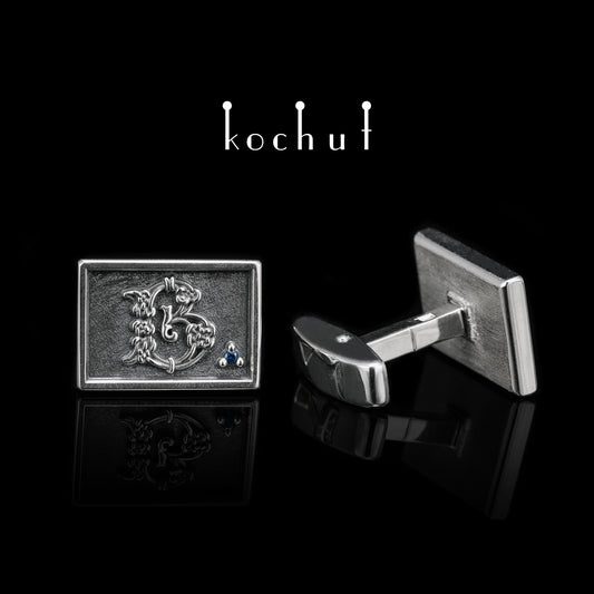 Celtic — Manschettenknöpfe aus oxidiertem Silber mit Saphiren
