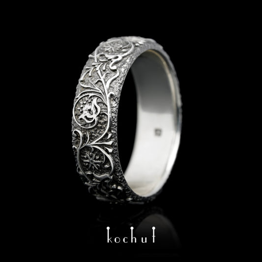 Harmonie der Natur — Ehering aus oxidiertem Silber