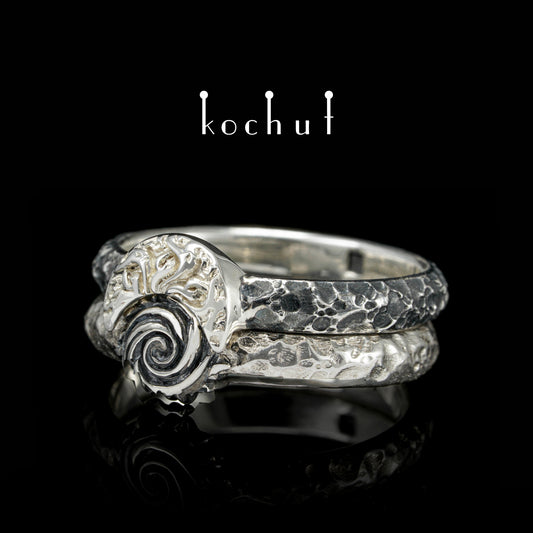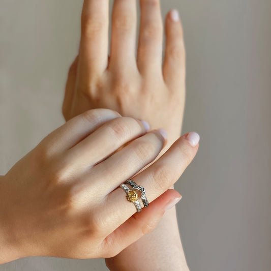Himmlisches Feuer — Ring aus oxidiertem Silber mit Vergoldung