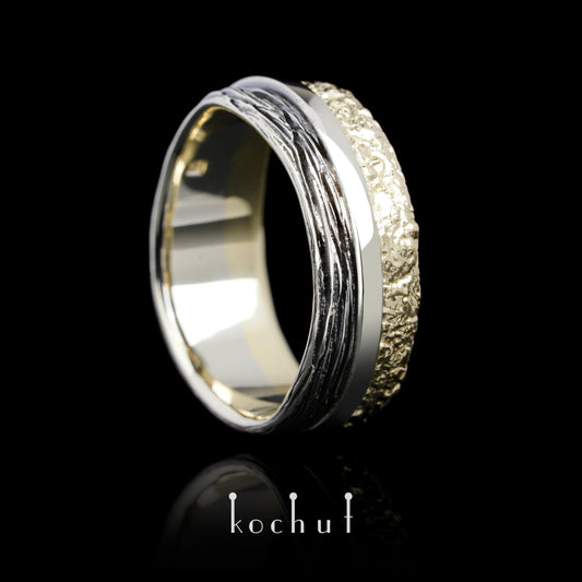 In Freude und Leid: Fundament—Ehering aus Weiß- und Gelbgold, überzogen mit schwarzem Rhodium