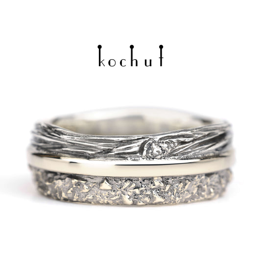 In Freude und Leid: Fundament — Ehering aus Weißgold und Silber, überzogen mit weißem Rhodium