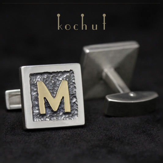 Initialen — Manschettenknöpfe aus oxidiertem Silber und Gelbgold