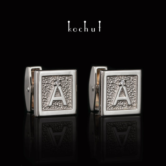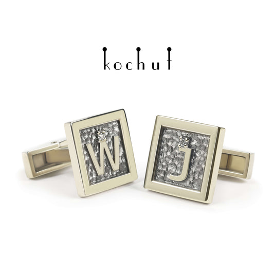 Initialen — Palladium-Goldmanschettenknöpfe mit Diamanten