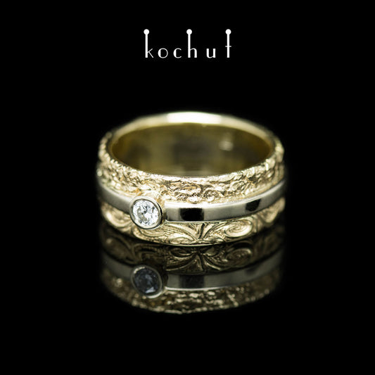 In Freude und Trauer — Ring aus weißem, gelbem 18-karätigem Gold mit einem Diamanten
