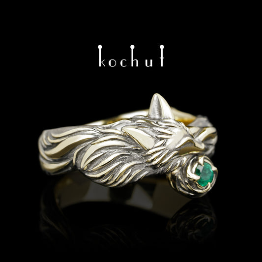 Kleiner Fuchs — Ring aus oxidiertem Silber mit Smaragd