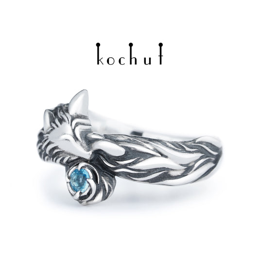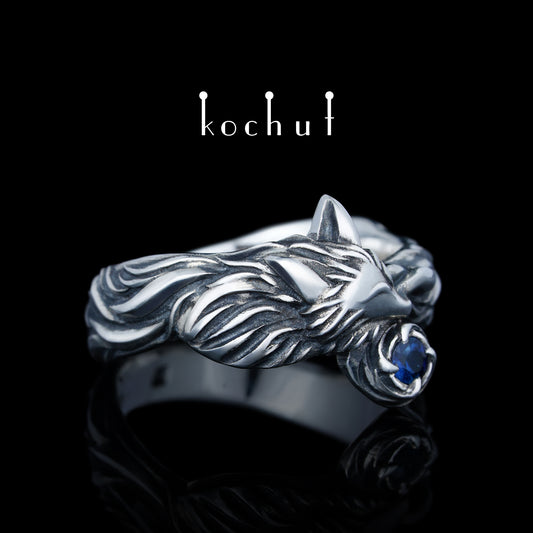 Kleiner Fuchs — Ring aus oxidiertem Silber mit Saphir