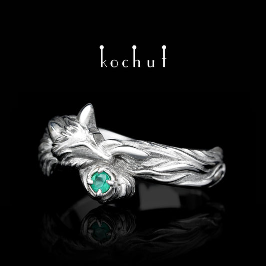 Kleiner Fuchs — Ring aus Silber mit Smaragd, beschichtet mit weißem Rhodium