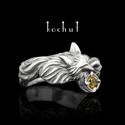 Kleiner Fuchs — Ring aus oxidiertem Silber mit Citrin
