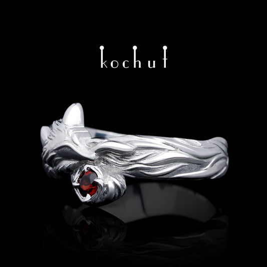 Kleiner Fuchs — Ring aus oxidiertem Silber mit Granat