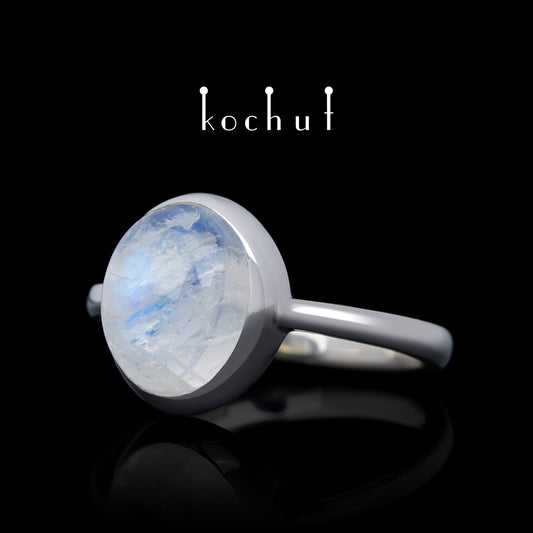 Leuchten der Seele — Ring aus Sterlingsilber mit Mondstein, beschichtet mit weißem Rhodium