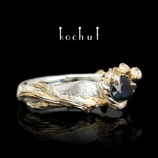 Atlantis — Verlobungsring aus Silber und Gelbgold mit Saphir und Diamanten