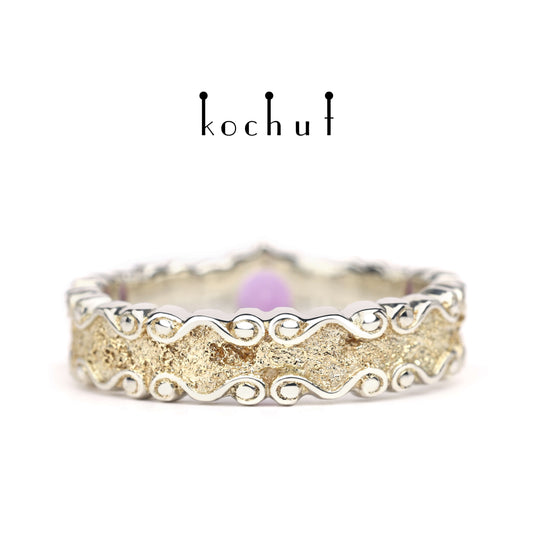 Marquise — Silberring mit Amethyst und goldener Oberfläche