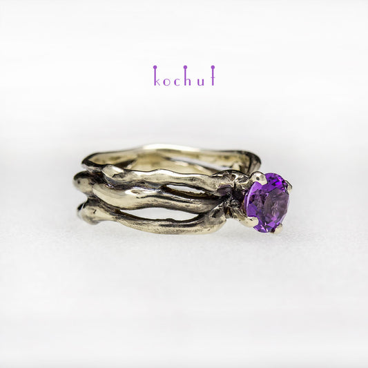 Mein kleiner Stern — ein Ring aus Weißgold mit schwarzer Rhodium-Beschichtung und Amethyst