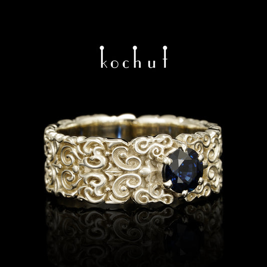 Notre Dame — Weißgoldring mit einem Saphir