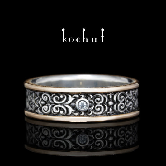 Notre Dame — Ehering aus Silber und Rotgold mit Diamanten, überzogen mit schwarzem Rhodium