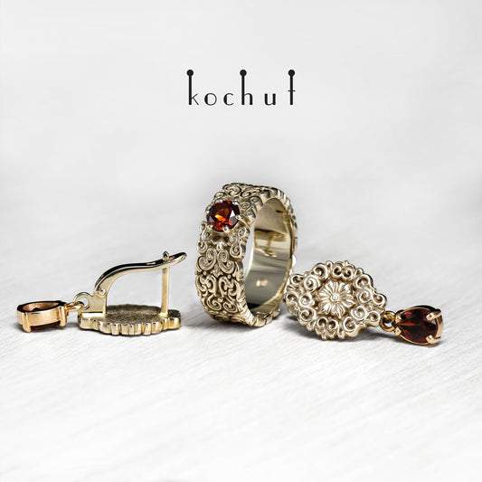 Notre-Dame — Ohrringe aus oxidiertem Silber und Gelbgold mit Granat