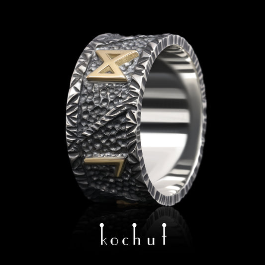 Runic Force — Ring aus oxidiertem Silber und Gelbgold