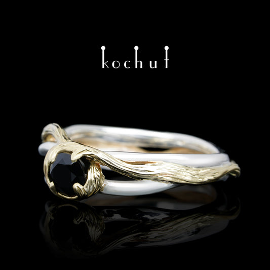Wärmefluss — ein Ring aus Silber, Gelbgold und mit einem schwarzen Spinell