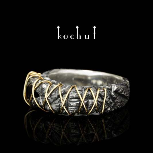 Wiedergeburt — Ring aus oxidiertem Silber und Gelbgold mit Citrin