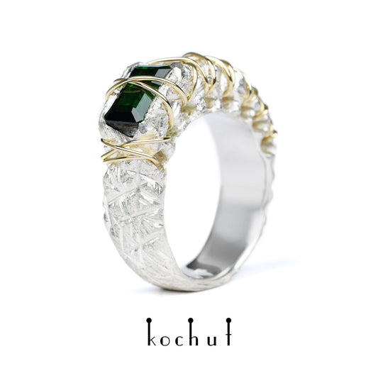 Wiedergeburt — Ring aus Silber und Gelbgold mit Turmalin