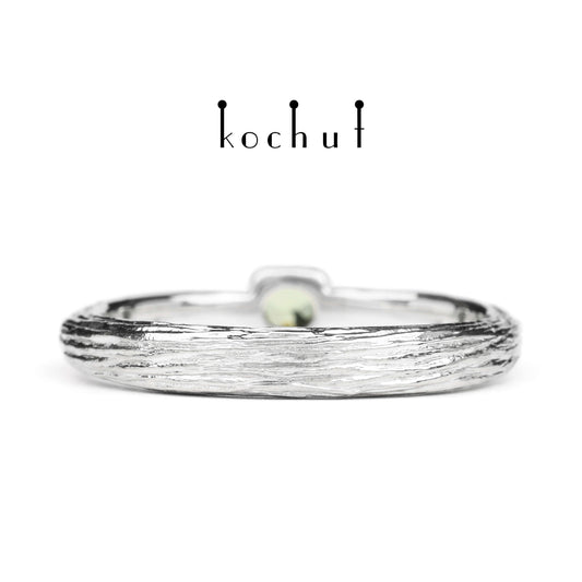 Zartes Zweig — Sterling-Silberring mit einem Chrysolith, beschichtet mit weißem Rhodium