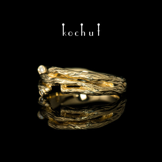 Zweig — Ring aus Gelbgold mit Chrysolithen