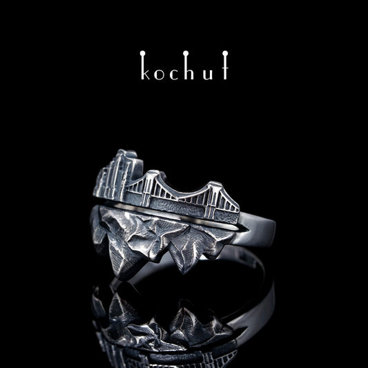 Zum Mond und zurück — Ring aus oxidiertem Silber mit Opal