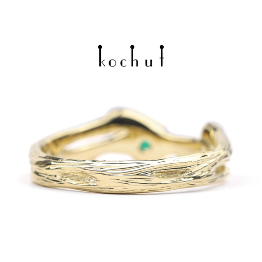 Zweig — Verlobungsring aus Gelbgold mit Smaragden