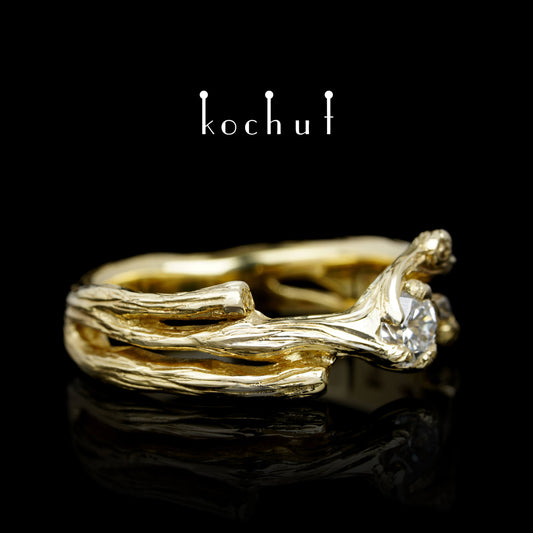 Zweig — Verlobungsring aus Gelbgold mit Diamant