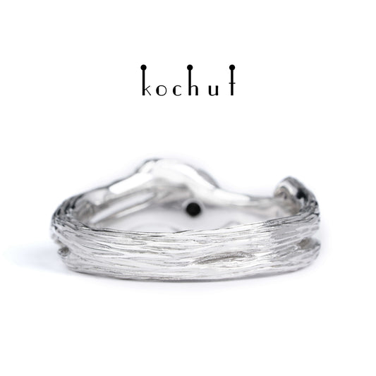 Zweig — Ring aus Weißgold mit schwarzem Spinell, platiert mit weißem Rhodium
