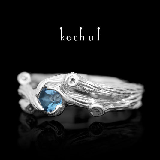 Zweig — Ring aus Weißgold mit Topas, beschichtet mit weißem Rhodium