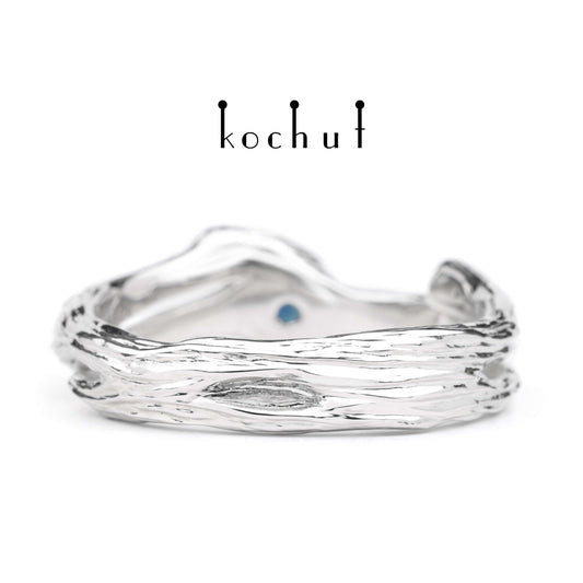 Zweig — Weißgoldring mit einem Saphir, bedeckt mit weißem Rhodium