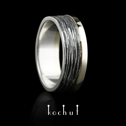 Baumrinde — Ehering aus gehärtetem und oxidiertem Silber