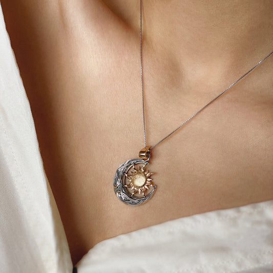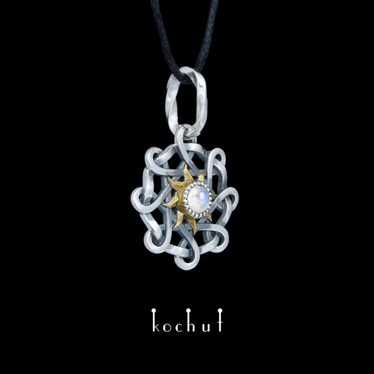 Surya — Anhänger aus oxidiertem Silber mit Mondstein und Vergoldung
