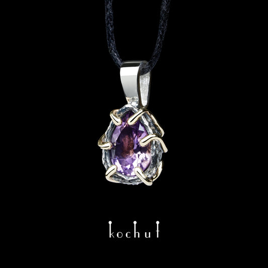 Aurora — Anhänger aus oxidiertem Silber und Gelbgold mit Amethyst