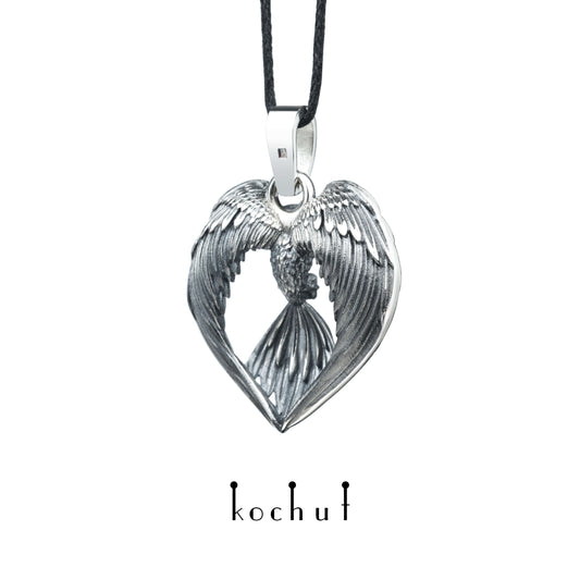 Phoenix — Anhänger aus oxidiertem Silber mit einem Granat