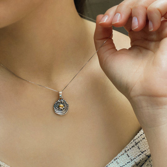 Surya — Anhänger aus oxidiertem Silber mit Citrin und Vergoldung