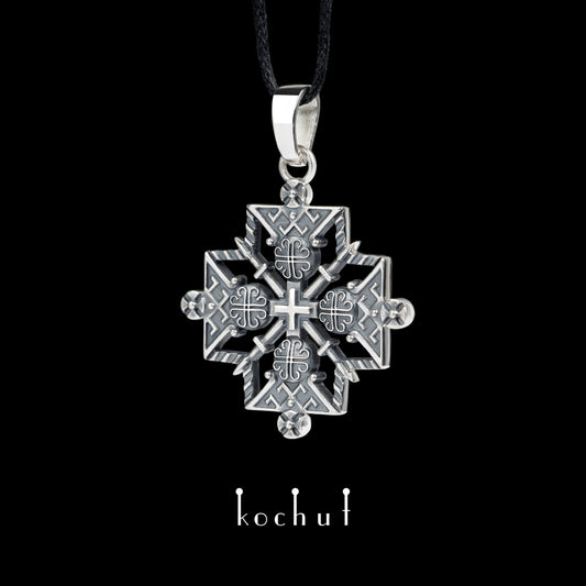 Hutsul-Kreuz — Anhänger aus oxidiertem Silber
