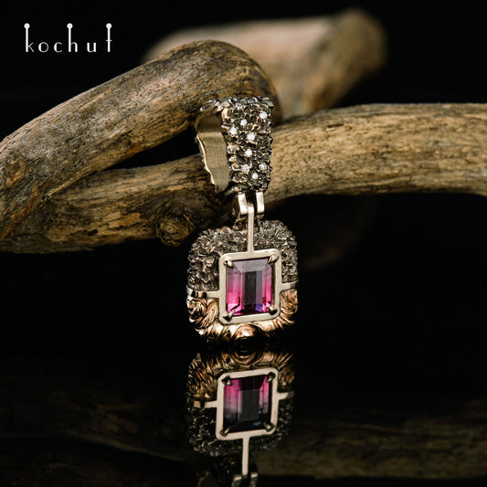 Geheimnisse des Universums — Anhänger aus Weiß- und Rotgold mit polychromer Turmalin, Diamanten, überzogen mit schwarzem Rhodium