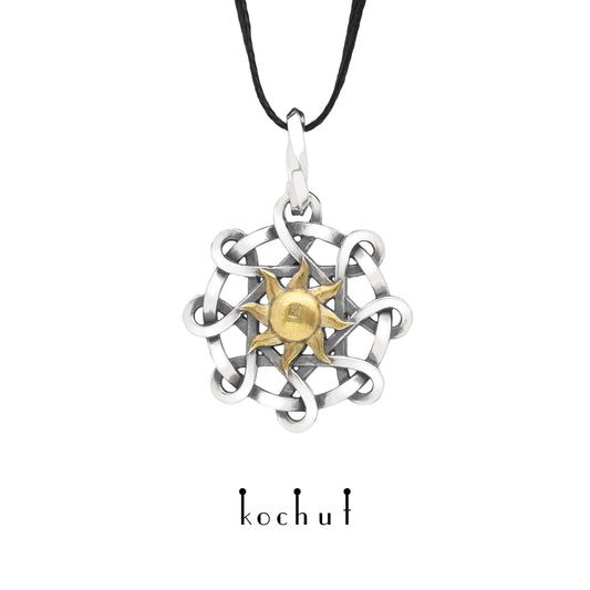 Surya — Anhänger aus oxidiertem Silber mit Vergoldung