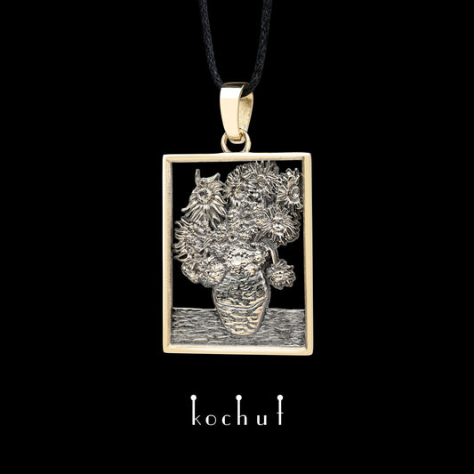 Sonnenblumen Van Gogh — Anhänger aus Gelbgold, beschichtet mit schwarzem Rhodium
