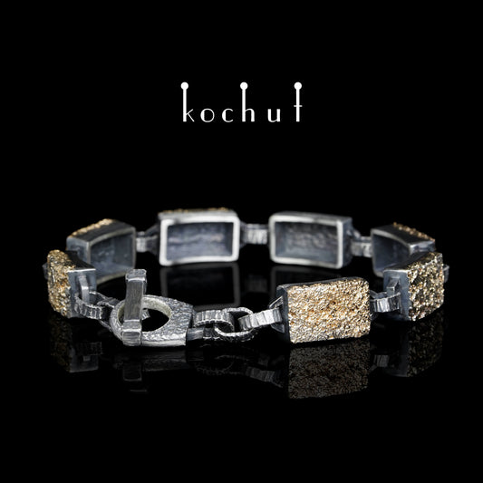 Leib und Seele: zusammenhängendes Ganzes – ganzheitliches Armband aus Silber und gelbem Gold mit Oberflächenbearbeitung