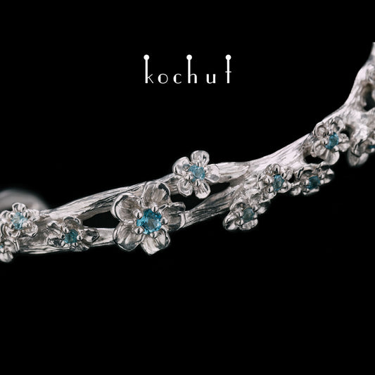 Florale Tiara — Silberarmband mit Saphiren, plattiert mit weißem Rhodium