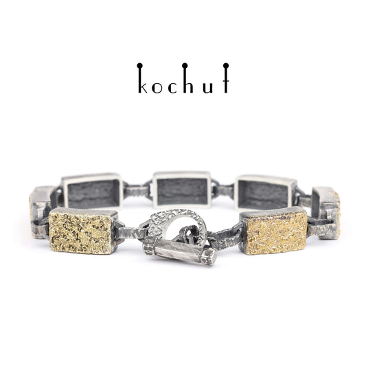 Leib und Seele: Fundament — Armband aus oxidiertem Silber und Gelbgold