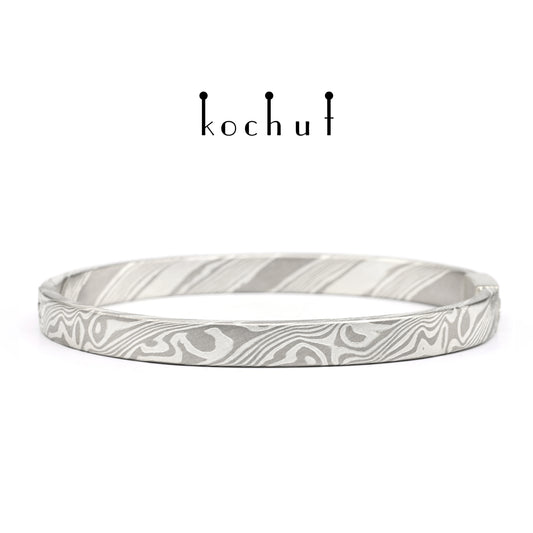 Enso — Mokume-Armband aus Palladium, Weißgold und graviertem Silber