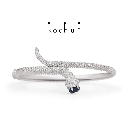 Liebe der Wiesel — Weißgold-Armband mit blauer Saphir und Diamanten, plattiert mit weißem Rhodium
