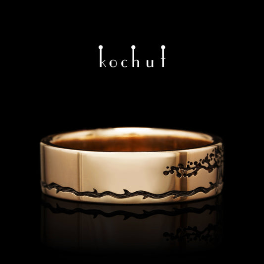 Baum des Lebens: Stiele — glänzender Ehering aus Rotgold mit schwarzem Rhodium überzogen