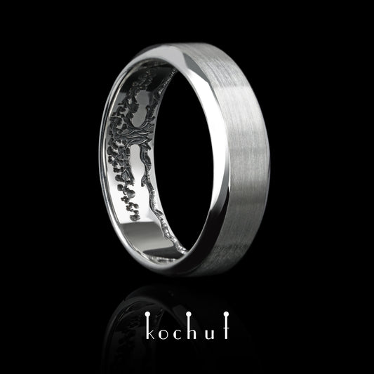 Baum des Lebens: Aschenrinde — Ehering aus Weißgold, beschichtet mit schwarzem Rhodium