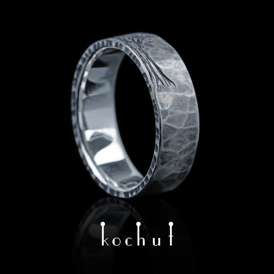 Baum des Lebens: halb geschmiedetes Licht — Ehering aus oxidiertem Silber